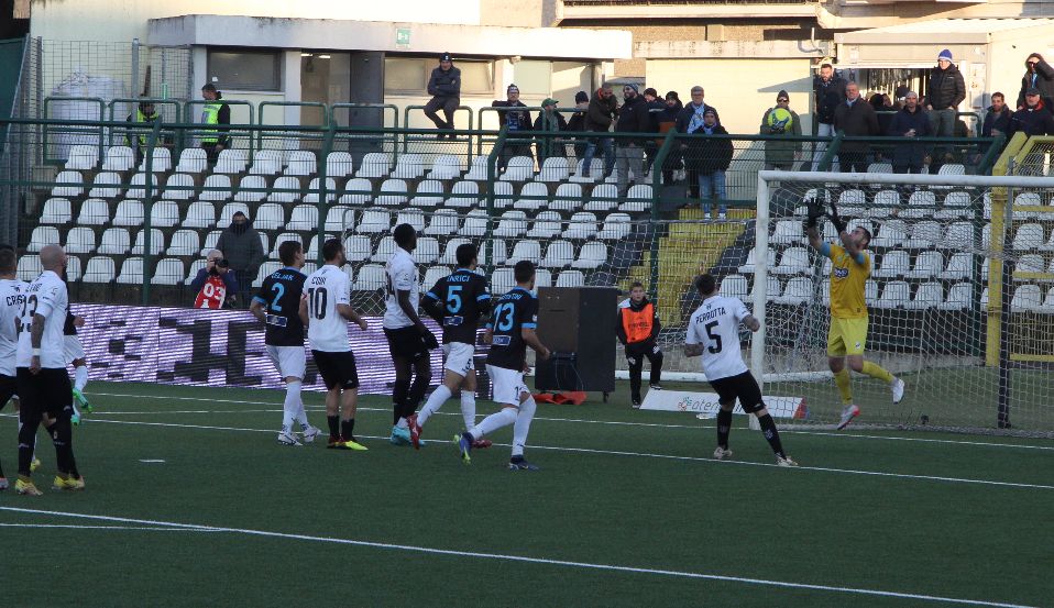 Nel concitato assedio alla porta difesa da Melgrati è stato finalmente il pronto scatto di Matteo Della Morte a spingere il pallone verso il fianco sinistro del portiere ormai sbilanciato e impotente sul tiro dell’attaccante vercellese.
