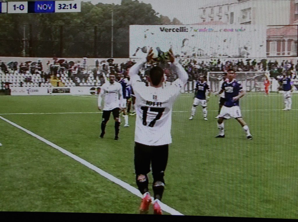 Ma l’amaro peggiore è quello che si procura la Pro Vercelli, nel secondo tempo, quando in una delle discese verso la porta di Valentini, è Bortolussi che crossa dalla linea di fondo andando a colpire l’incredibile braccio teso di Cristini in area di rigore .