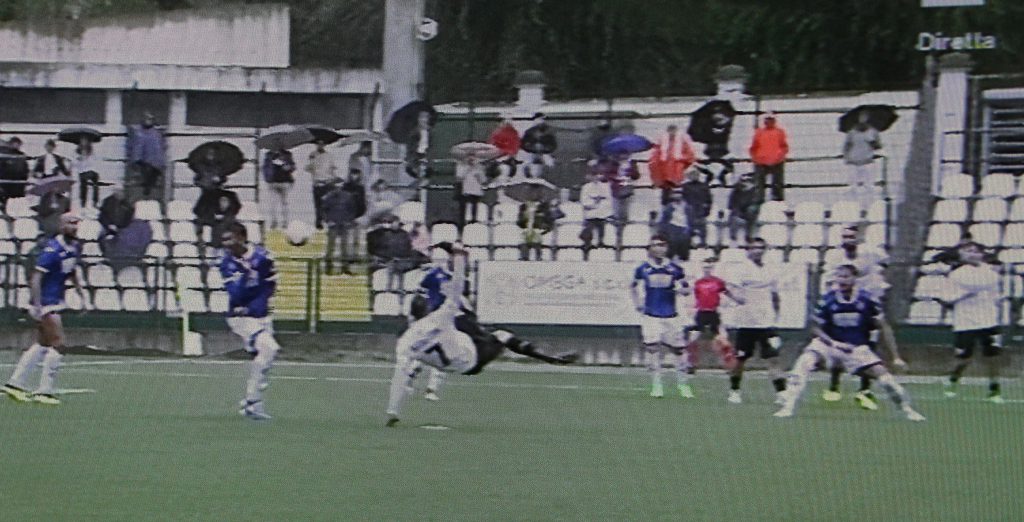 per la Pro Vercelli che nel giro di 30 secondi passa dallo stato di oppressione alla rivoluzione, grazie ad un tiro magistrale di Della Morte da fuori area verso il portiere Pissardo che vede il pallone alle sue spalle soltanto dopo che la palla si è insaccata velocemente alla sua destra.
