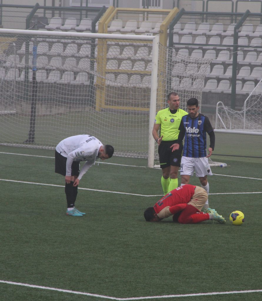 Si arriva infatti al 90° tra la tristezza e la rassegnazione: tutto gioca contro la Pro, arbitro, segnalinee, stato confusionale del centrocampo, e persino un collaboratore panchinaro del Renate che getta volutamente un secondo pallone sul campo per fermare un’azione della Pro in fase di attacco.