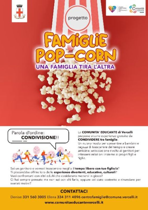 Invece di limitarsi ad una campagna di informazione e sensibilizzazione sui temi del contrasto alla povertà educativa, la CEV ha deciso di spingersi oltre, cercando di coinvolgere in modo attivo le famiglie di Vercelli in un progetto dal titolo scoppiettante: Famiglie pop-corn una famiglia tira l’altra.
