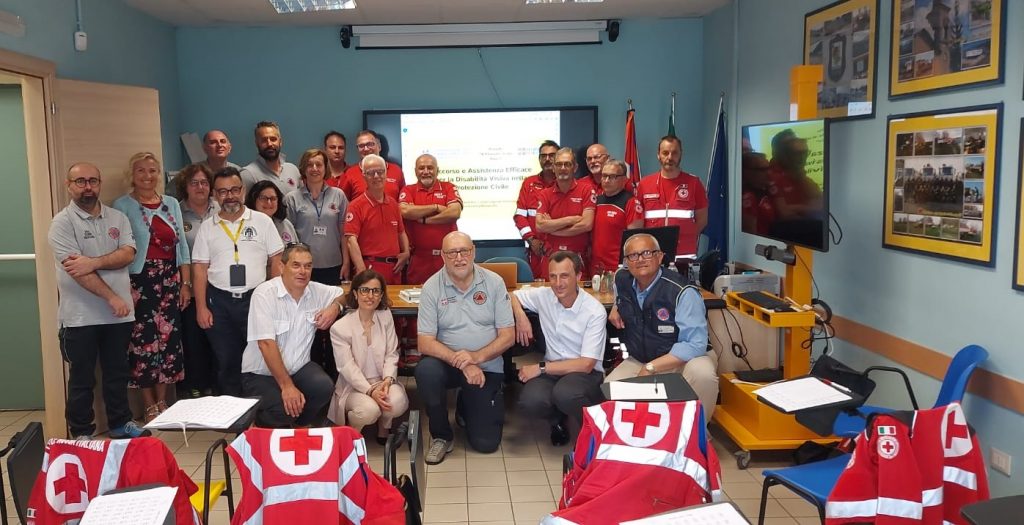 Il corso ha coinvolto oltre 20 volontari della protezione civile e della croce rossa ed ha affrontato le strategie per un soccorso efficace in caso di emergenze sia dal punto di vista teorico che con prove esperienziali di simulazione diretta della disabilità visiva attraverso l’utilizzo di bende e occhialini da far indossare ai partecipanti, simulazione diretta di un percorso al buio con l’ausilio del bastone bianco.
