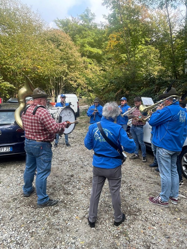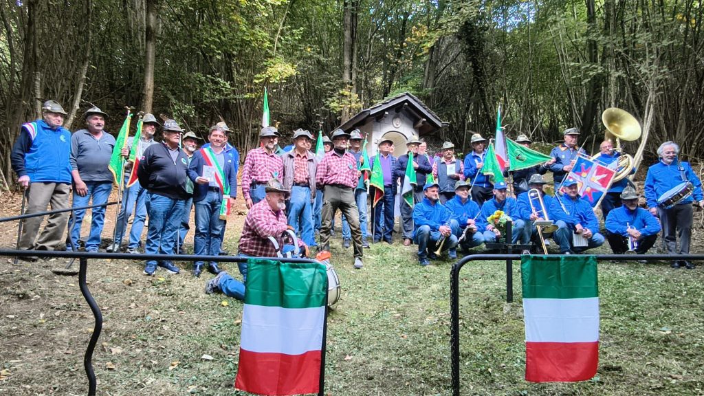 Dopo una breve sfilata nei boschi e pregato insieme a Don Roberto di Borgosesia sono stati omaggiati i caduti alla cappella della Bondaccia.