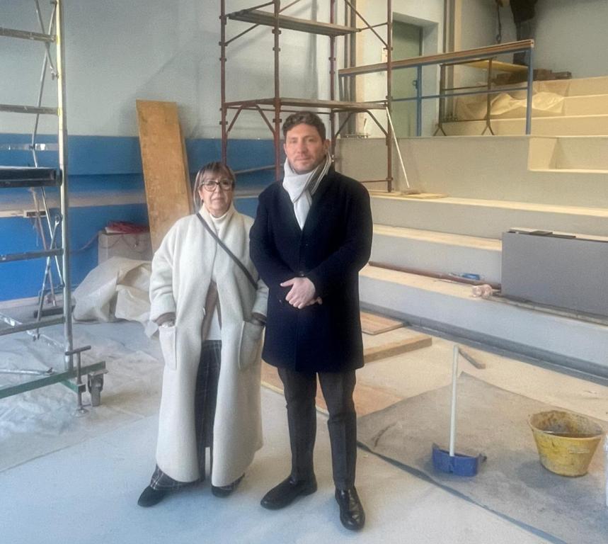 Il sindaco Francesco Pietrasanta insieme all’assessore ai lavori pubblici Mariarosaria Gallotta ha effettuato oggi, giovedì 5 febbraio, un sopralluogo alla scuole Medie per vedere come procedono i lavori di rinforzo della struttura della palestra e dell’auditorium.