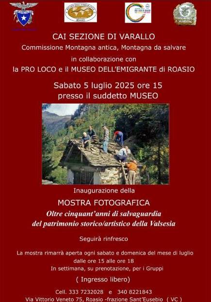 ROASIO - Mostra fotografica al Museo dell’emigrante “Oltre cinquant'anni di salvaguardia del patrimonio storico/artistico della Valsesia”L’evento è stato realizzato in collaborazione con la Pro Loco di Roasio e il CAI, sezione di Varallo Cultura e Spettacolo 30/06/202501/07/2025 Valsesia e Valsessera