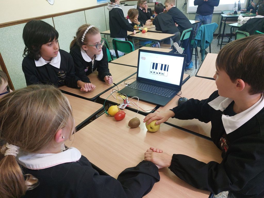 «Durante gli incontri gli alunni e le alunne stanno svolgendo diverse attività volte ad accattivare la loro curiosità sul tema e a instillare in loro la passione per le Stem (le discipline scientifico-tecnologiche), in generale, senza preconcetti o disparità di genere – spiega Dalfovo –. Durante il primo incontro, abbiamo iniziato il nostro viaggio di conoscenza partendo dall’elemento principe della materia: la corrente elettrica. Abbiamo sperimentato quali sono i corpi conduttori e facendo suonare oggetti di uso comune attraverso una scheda elettronica. Durante il laboratorio i bambini e le bambine hanno lavorato in piccoli gruppi, attuando quello che viene definito Cooperative Learning, e vissuto un’attività totalmente esperienziale».