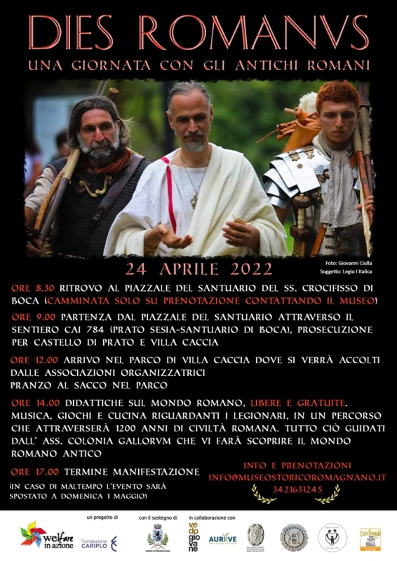 L’evento “Dies Romanvs” in programma per domenica 24 aprile èm stato rimandato a domenica 1 maggio a causa maltempo.