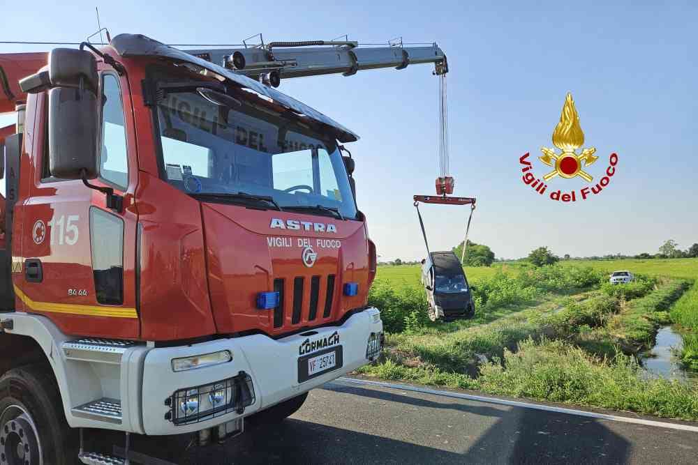 All’arrivo sul posto i Vigili del Fuoco hanno trovato una vettura dentro una roggia con una persona all’ interno e hanno provveduto alla sua estrazione e al suo recupero.