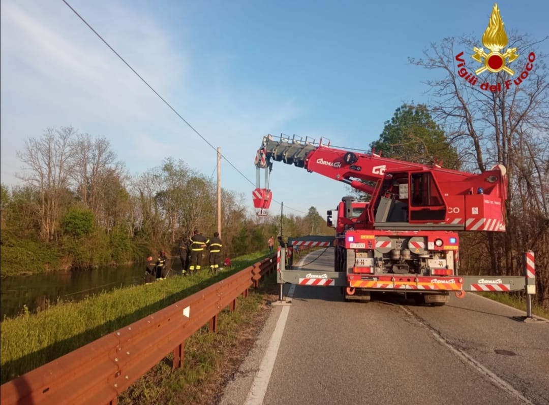 La squadra permanente dei Vigili del Fuoco del distaccamento di Livorno Ferraris, Comando Provinciale di Vercelli, è intervenuta oggi, martedì 19 aprile alle ore 16.30 circa, sulla SP 29 tra Saluggia e la Rocca, per il recupero di una Fiat Panda segnalata nelle acque del canale De Pretis.