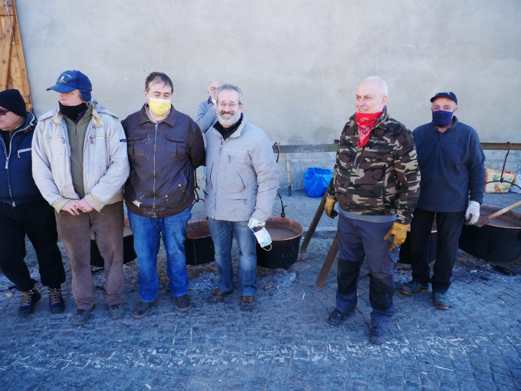 Il gruppo di “tecnici” ha iniziato all’alba la preparazione dei falò dove mettere a cuocere – nei caratteristici pentoloni – tanti fagioli e salami: si sono volatilizzati in un attimo (non prima che il Parroco impartisse la benedizione a tutti). E sì che di gente ce n’era veramente tanta.