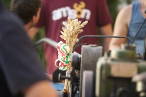 La domenica, nonostante il grande caldo, è volata, tra Santa Messa al campo celebrata da Mons. Vescovo Gianni, da Don Giuseppe Cesana e Fra Massimo, il ritorno del Coro dei Pulcini di Padre Adalgiso Merlo, gli antichi mestieri di San Vittore, l’Ordine della Lancia, i collezionisti di camion, auto e mezzi d’epoca, il pranzo contadino, la mietitura e la trebbiatura manuale.