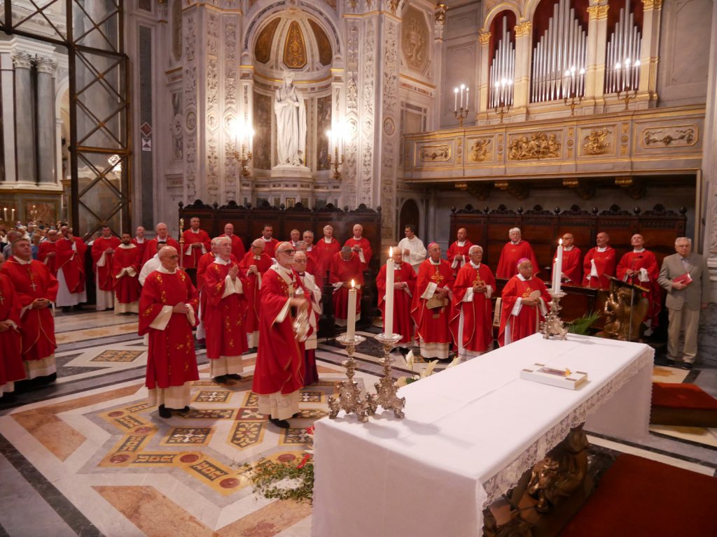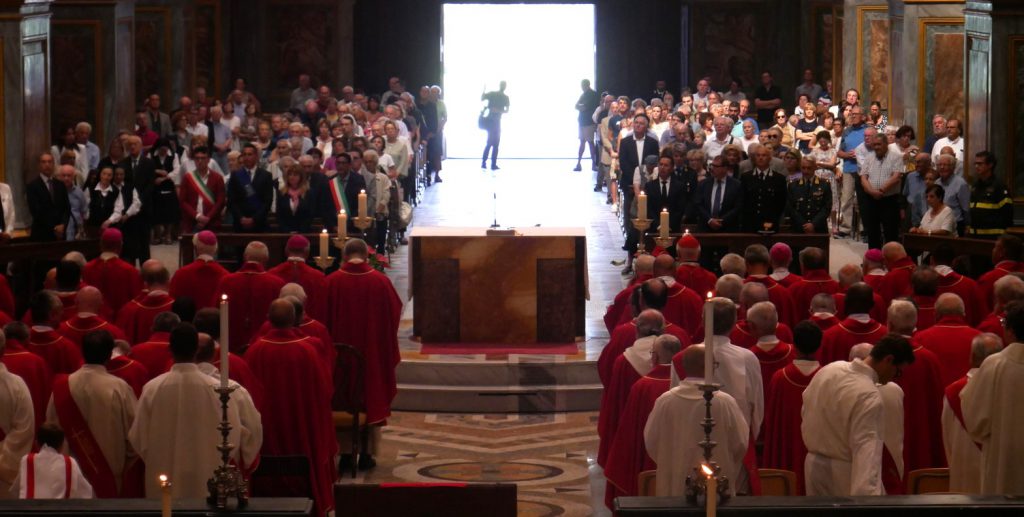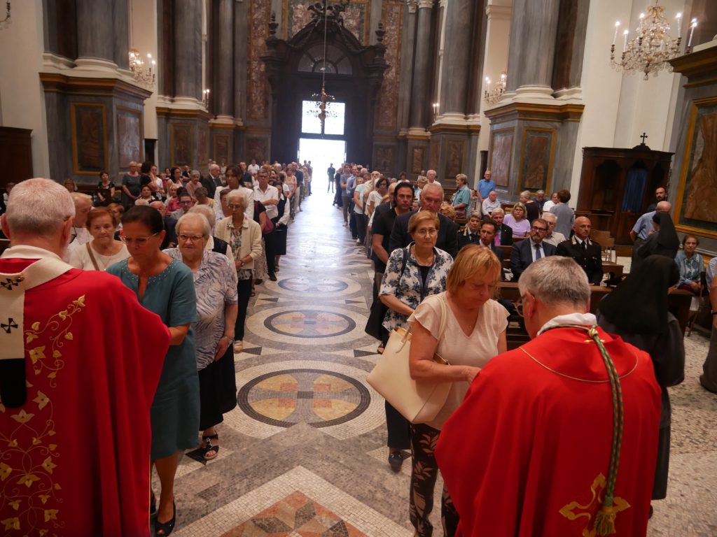 La cattedrale del Duomo di Vercelli gremita di fedeli, il presbiterio quasi al completo, con le eccezioni dei Sacerdoti che stanno accompagnando i ragazzi alla Giornata Mondiale della Gioventù di Lisbona.