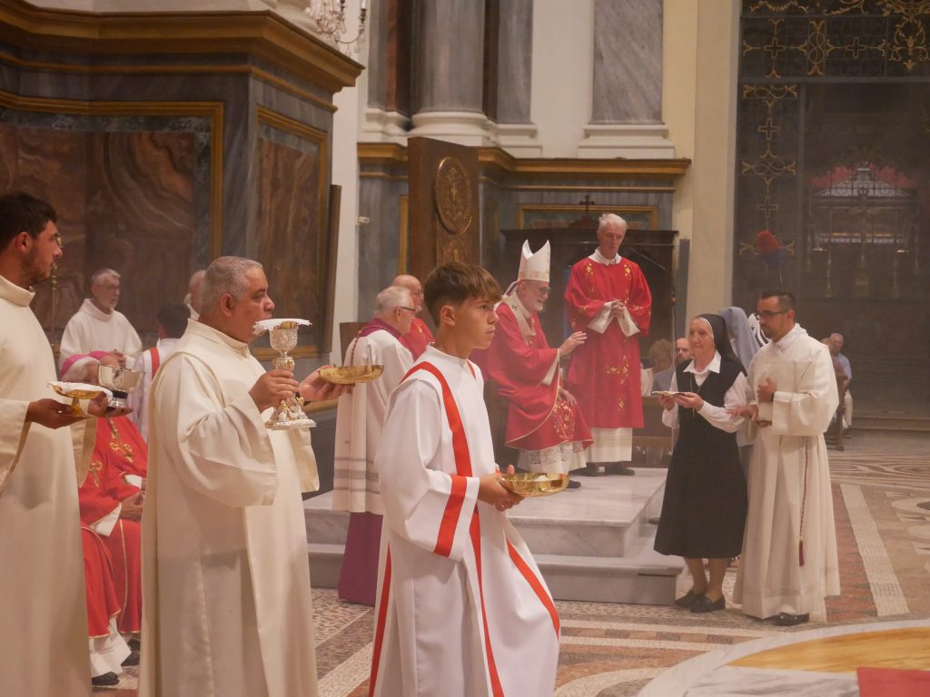 Non sarebbe giusto concludere queste righe senza ricordare l’accompagnamento della Liturgia recato dalla Cappella Musicale Eusebiana, diretta da Don Denis Silano, sempre all’altezza del compito ed oggi, se è permesso un apprezzamento, anche di più.