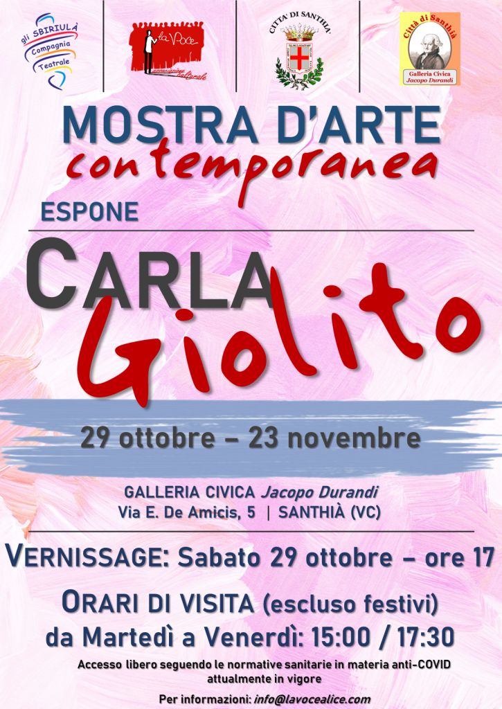 Sabato 29 ottobre, l’Associazione Culturale La Voce avrà il piacere di inaugurare la mostra in cui sarà protagonista l’artista vercellese Carla Giolito.