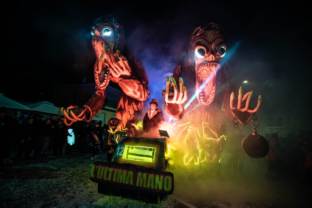 Al termine sono stati proclamati i vincitori dei carri di prima categoria e dei gruppi mascherati a piedi dell’edizione 2025.