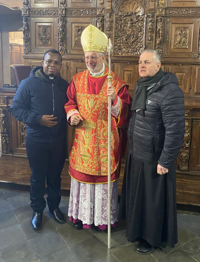 Gli alunni del Seminario arcivescovile di Vercelli accompagnati dal rettore monsignor Stefano Bedello, vicario generale, già prevosto della comunità santhiatese, hanno presto servizio liturgico, insieme ai ministranti di Santhià.