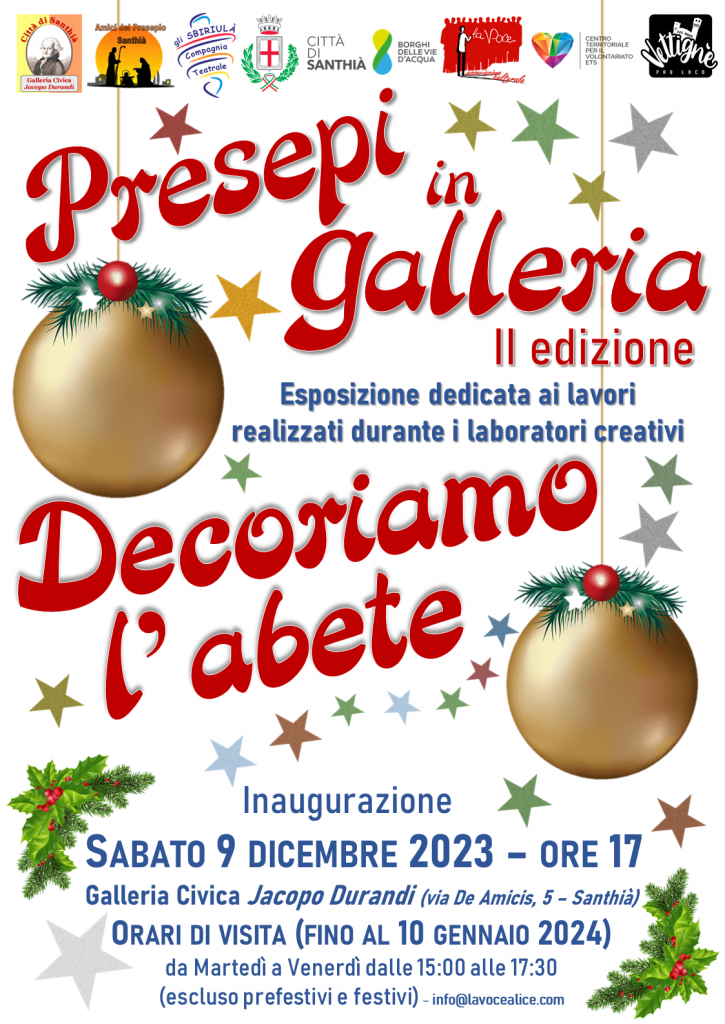 A conclusione dei laboratori organizzati lo scorso mese dall’Associazione Culturale La Voce ODV, “Decoriamo l’abete” e “Costruiamo il presepe!”, finalmente sarà possibile ammirare i lavori creati dalle abili mani e dalla fantasia dei partecipanti.