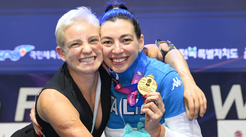 La gara individuale del fioretto femminile Categoria B ha riservato emozioni straordinarie all’atleta piemontese delle Fiamme Oro, che ha percorso un cammino straordinario fin dall’inizio, col 15-2 imposto alla britannica Moore ai sedicesimi di finale, per poi proseguire col 15-12 sulla thailandese Jana agli ottavi e un doppio 15-7 tra quarti e semifinale contro la coreana Cho e contro l’atleta neutrale Michurova. 15-9 è invece il risultato della finale, dominata e vinta contro la cinese Su Kang, prima di lasciarsi andare all’emozione, alla commozione, all’abbraccio con l’ex compagna di squadra Bebe Vio.