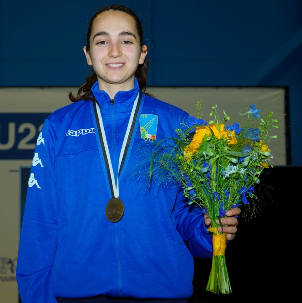 La spadista torinese dell’Aeronautica Militare, campionessa del mondo Cadetti a Bourges 2016, è salita sul terzo gradino del podio della competizione continentale perdendo per una sola stoccata il match di accesso alla finale.