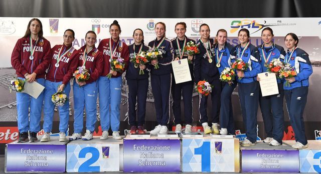 Il quartetto composto dalla vercellese Federica Isola e dalle torinesi Alessandra Bozza e Gaia Caforio (Ginnastica Victoria la prima, Marchesa la seconda) si impone per una sola stoccata, 25-24, nella finale contro le Fiamme Oro di un’altra torinese, Alice Clerici (Marchesa anche lei), dopo aver superato per 43-29 la Cesare Pompilio Genova in semifinale e l’Accademia Marchesa Torino (Chiara De Piccoli, Margherita Martini, Vera Perini e Sabrina Piatti, ottave alla fine) per 45-31 ai quarti.
