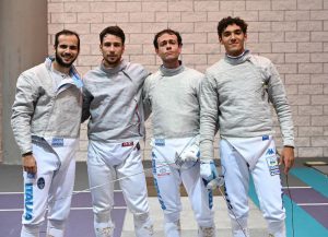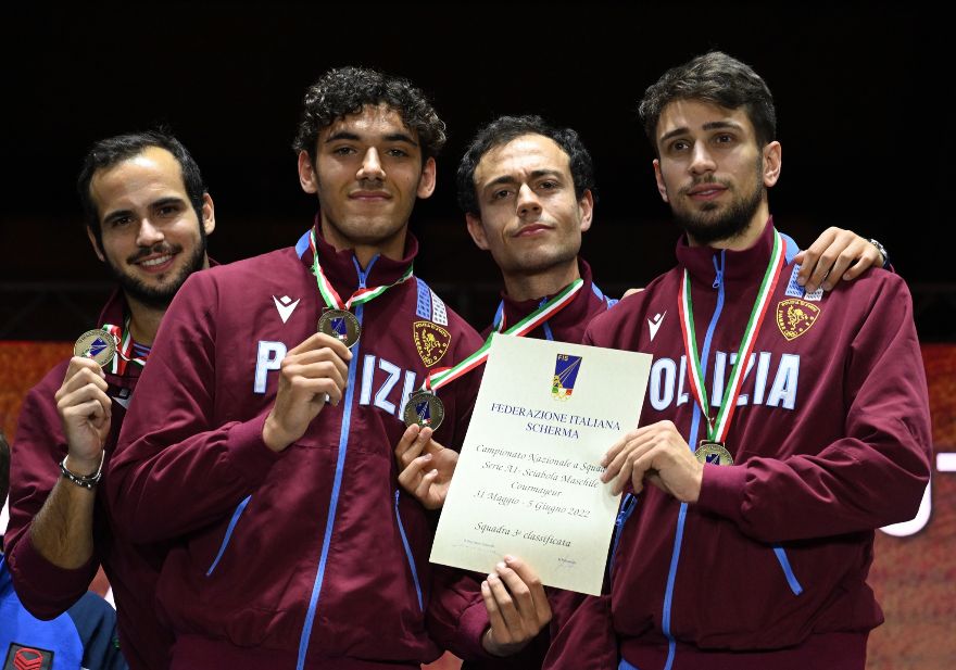 In semifinale, Nuccio e compagni (Luca Curatoli, Luca Fioretto e Pietro Torre), campioni uscenti della specialità, si erano arresi per una sola stoccata, sconfitti 45-44 dai Carabinieri (Matteo Neri, Giacomo Mignuzzi, Edoardo Cantini, Federico Riccardi).
