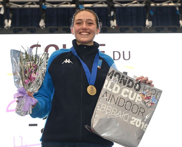 Il podio però non ha appagato la giovane fiorettista torinese, che ha prima superato in semifinale Ludovica Franzoni, ritiratasi per infortunio, poi ha superato in finale la cinese Xu per 15-12, conquistando quindi la vittoria nella gara.