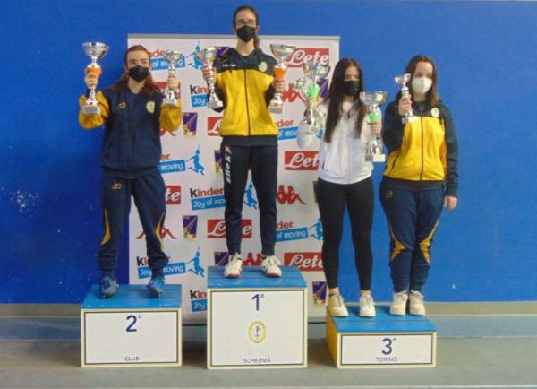 Nel fioretto femminile, vittoria di Letizia Gabola (Club Scherma Torino), secondo posto per Sofia Raggio (Club Scherma Rapallo), terze Vittoria Lingua (Circolo Schermistico Cuneo e Lucrezia Canessa (Club Scherma Rapallo).
