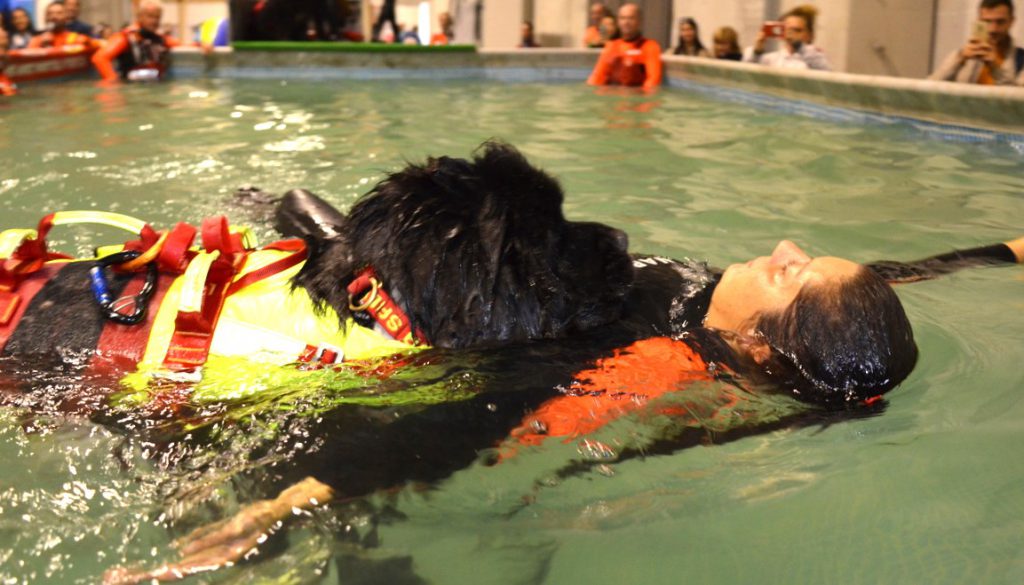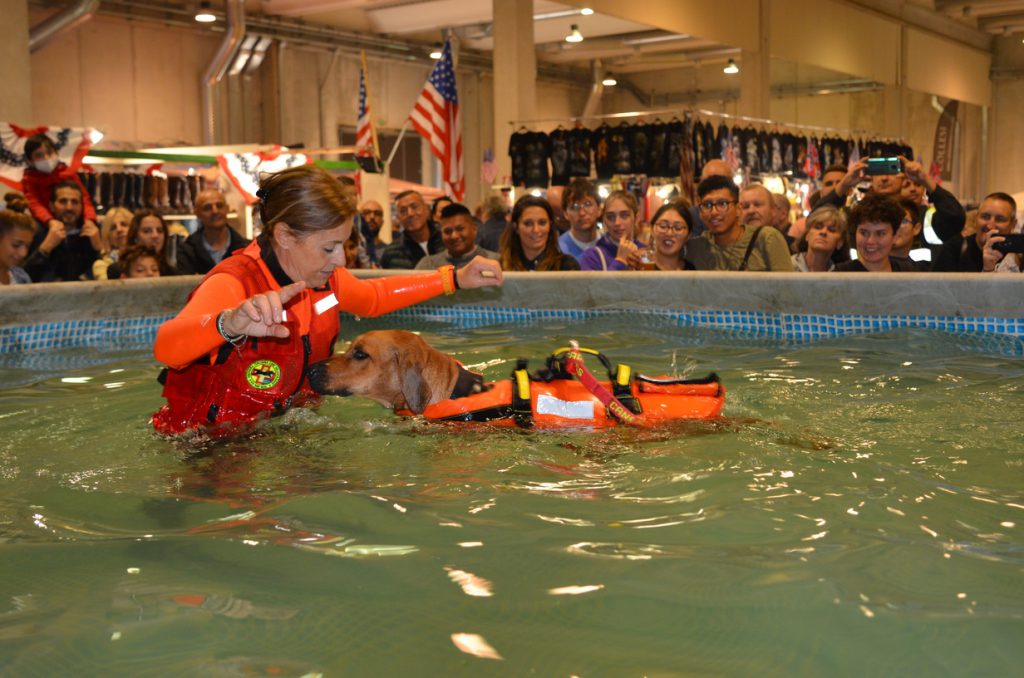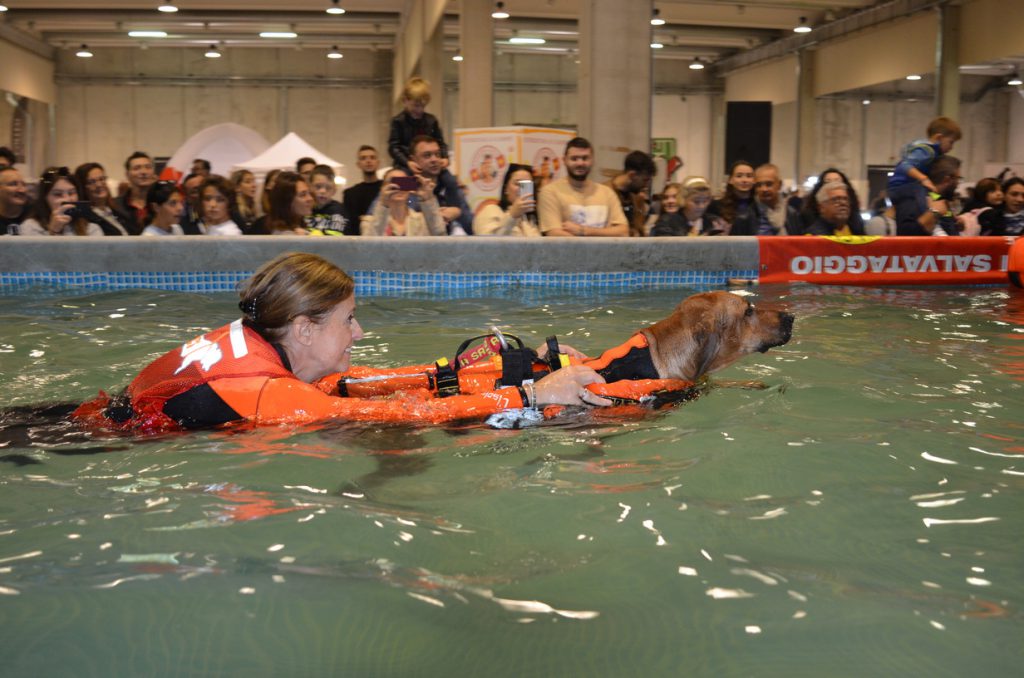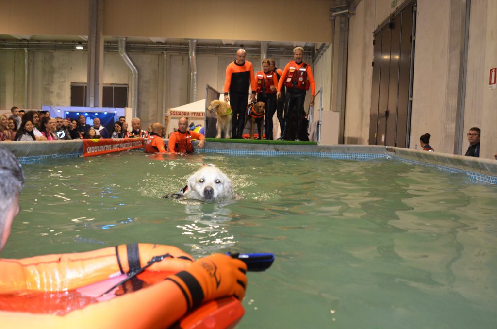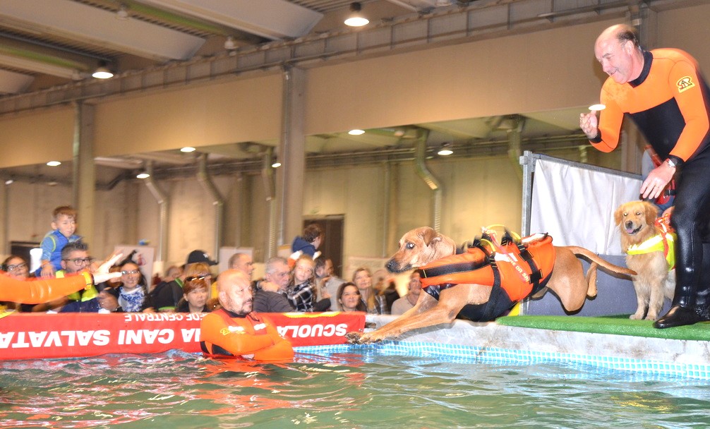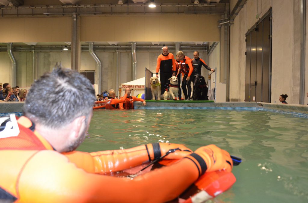 E’ davvero un piacere vederli nella piscina allestita nei grandi capannoni del centro fieristico, mentre danno dimostrazioni emozionanti di “nuoto per salvamento”: davvero portentosi e tanti complimenti vanno anche ai loro conduttori.