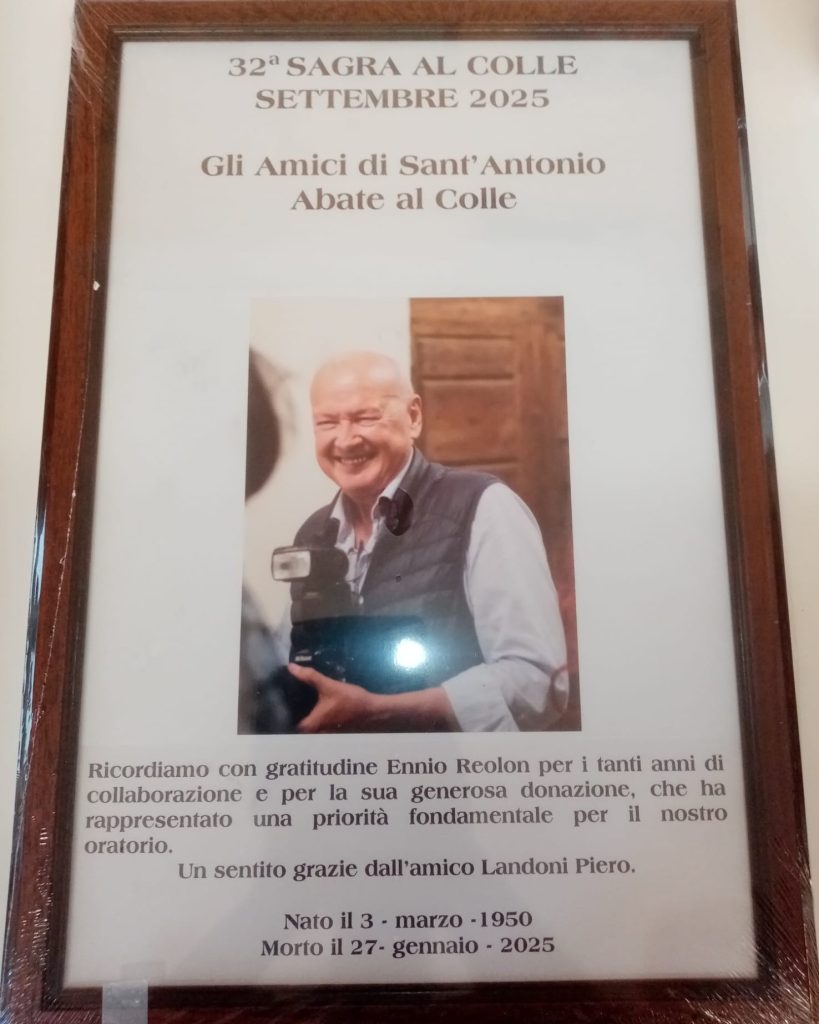 Al termine della Messa il Parroco e gli amici Piero Landoni, fabbriciere e anima della piccola chiesa che mantiene ordinata, pulita ed accogliente, e Piera, hanno ricordato il fotografo Ennio Reolon, persona discreta, gentile ed accogliente, mancato prematuramente il 27 gennaio scorso.