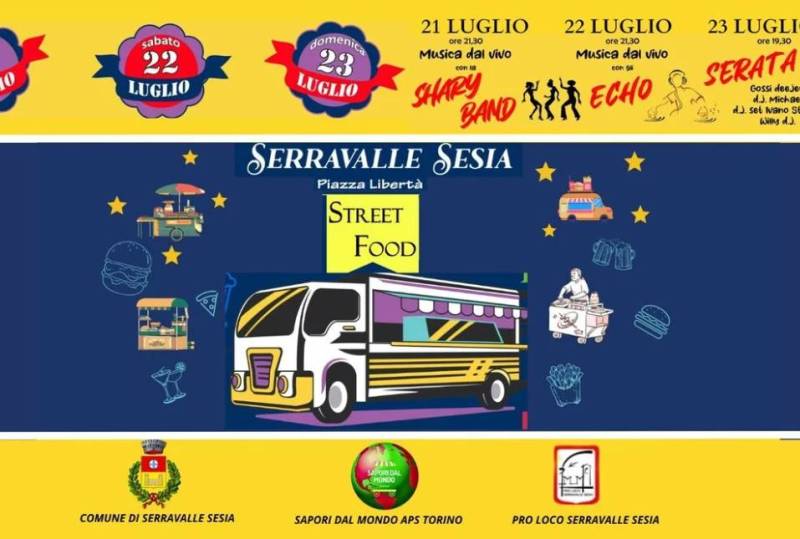 Serravalle Sesia si prepara ad accogliere un fine settimana di gusto, divertimento e musica con l’evento “Serravalle Sesia Street Food” che si terrà in Piazza Libertà dal 21 al 23 Luglio.