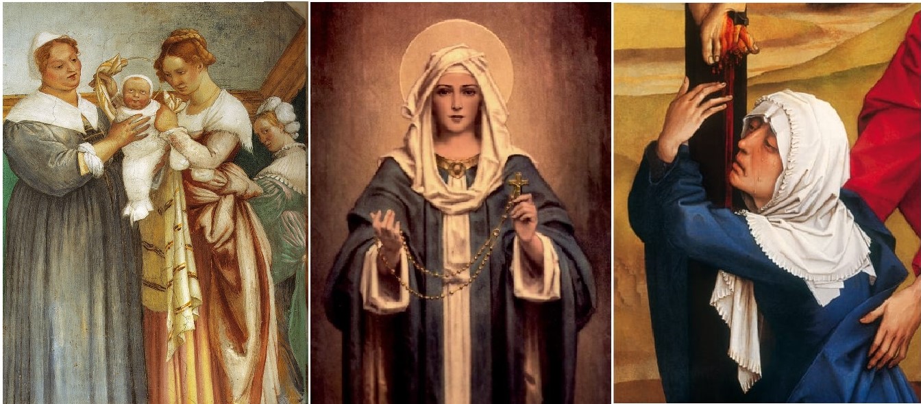 Maria, vera donna e creatura e, al contempo, preservata dal Padre per il progetto della salvezza, per compiere il Suo disegno d’amore verso l’umanità, viene contemplata in momenti differenti: la fragilità del nascere, del “venire al mondo” (8 settembre – Natività di Maria); il ricevere un nome (12 settembre – Santo Nome di Maria); il contemplare l’immenso dolore del Figlio crocifisso, divenendo, sotto il patibolo, Madre di tutti gli uomini (15 settembre – Beata Vergine Addolorata).