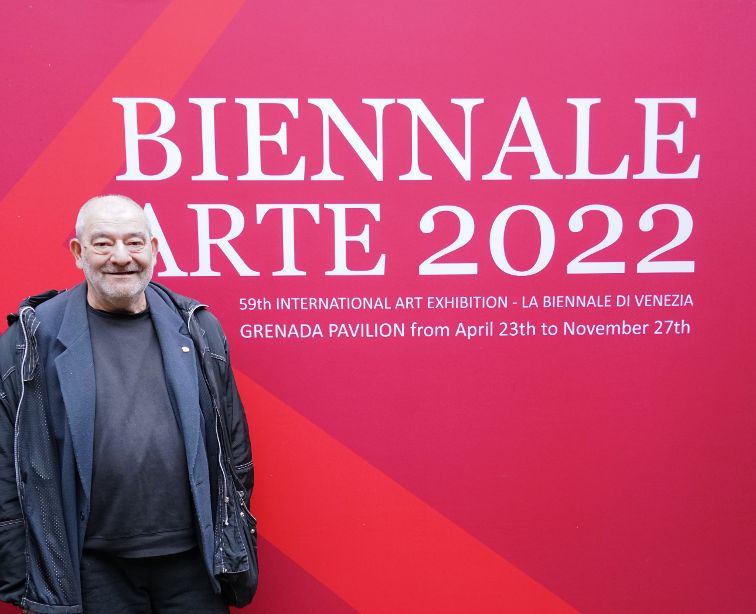 Ultimo successo in ordine di tempo la partecipazione alla Biennale d’Arte di Venezia ospite presso il Padiglione Nazionale Grenada, “Giardino Bianco Art Space” con una sua opera storica, “Luci in risaia” , opera in cui – recita il catalogo – “L’orizzonte è definito da zolle di colore, argini simmetrici di una apparente costa, posta a segnalare a divisione tra acqua, terra e cielo… luoghi dell’anima di una terra fantasma, immersa in una nebbia lattiginosa… richiamando la memoria di luoghi perduti, trasfigurati, quasi metafisici”.