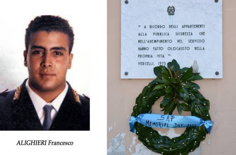 Oggi 11.05.2022, il SAP Provinciale di Vercelli ha ricordato, con una deposizione di una corona alle ore 12:30 presso il monumento ai Caduti all’ interno della Questura di Vercelli alla presenza del sig. Questore della Provincia di Vercelli Dott. Di Domenico , del Vicario Dott.ssa Palmisano e di Elisabetta Alighieri sorella di Francesco Alighieri poliziotto caduto nell’adempimento del proprio dovere e vittima di mafia il 26 settembre 2018 , insignito della Medaglia d’ Argento al Valor Civile.