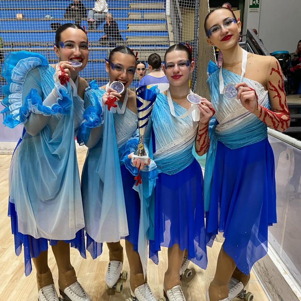 Nella parte di gara dedicata alla specialità gruppi, lo Skating ha presentato in gara le sue due formazioni nella categoria Quartetti Divisine Nazionale. La medaglia d’oro è andata alla formazione Energy, composta da Anita Berveglieri, Arianna Demaria, Giorgia Fattore e Mariachiara Pozzato, mentre un fantastico argento ha coronato il collo delle atlete della formazione A.N.I.M.A.: Nausicaa Cortopassi, Alessia Chiodo, Martina Giolo e Ilaria Zarbo, confermando il risultato ottenuto al Campionato Regionale Federale di qualche settimana fa..