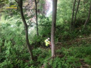 I militari, impiegando le medesime tecniche di salvataggio per soccorrere, in circostanze reali, un uomo precipitato in un dirupo nei pressi delle caldaie del Sesia, hanno eseguito il recupero di un “manichino da esercitazione” posizionato lungo un ripido costone di roccia con l’ausilio di una barella speciale e di una manovra a contrappeso.