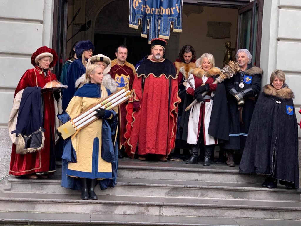 Nel pomeriggio, il Podestà Gianni Girardi ha preso parte alla tradizionale cerimonia del sale e del pane prima di dirigersi al Monte Stella per unirsi al corteo che, guidato dagli Alfieri, ha sfilato in Piazza Ottinetti, portando le bandiere delle antiche parrocchie cittadine.