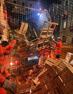 Volontari e operatori si sono rimessi all’opera per restituire ordine a strade e piazze.