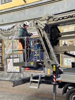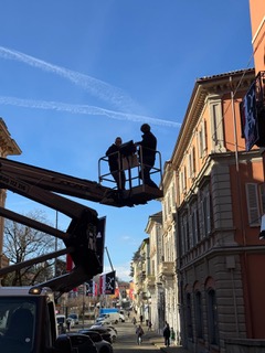 I commercianti e gli abitanti del centro hanno sistemato usci e vetrine con pazienza e cura.