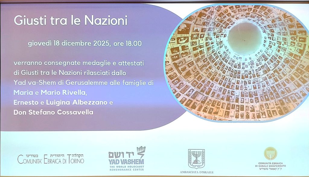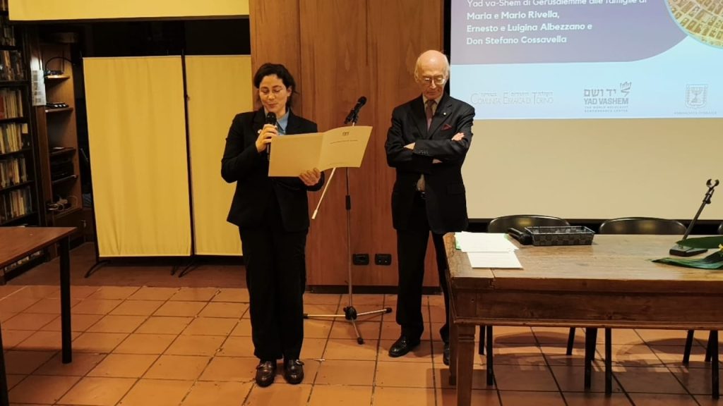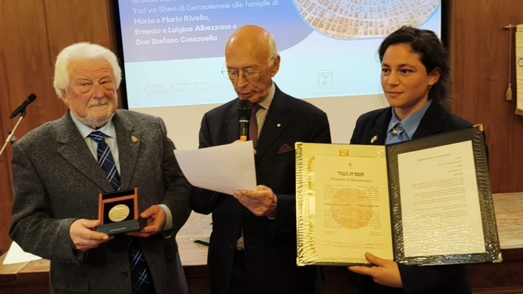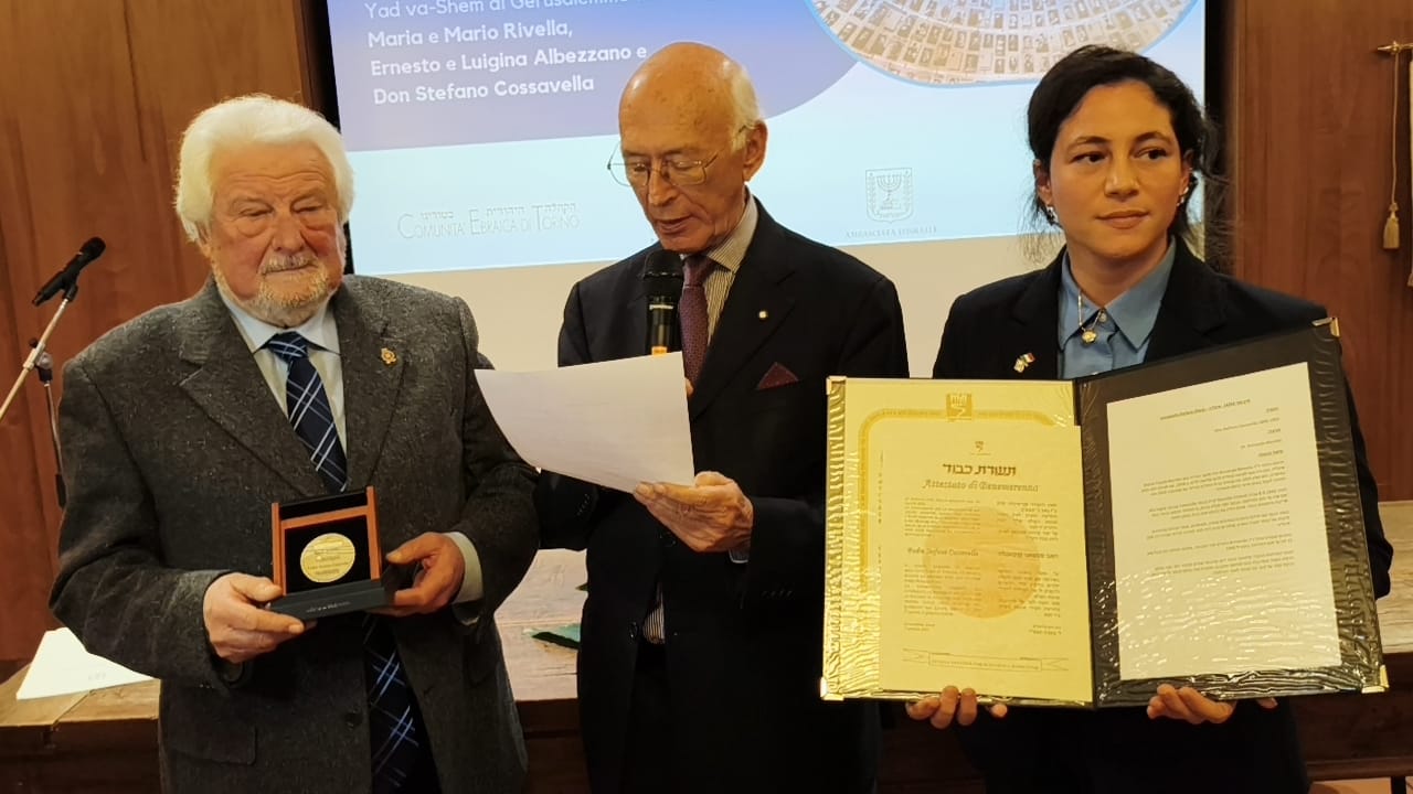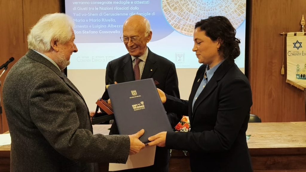 Giovedì 18 dicembre – nel corso di una semplice, quanto partecipata e toccante cerimonia tenutasi presso la Sinagoga di Torino, in piazzetta Primo Levi – la consegna ufficiale del riconoscimento alla memoria agli eredi di Don Cossavella e di altre due famiglie piemontesi di Castagnole delle Lanze in provincia di Asti, quelle, rispettivamente, di Maria e Mario Rivella e di Ernesto e Luigina Albezzano.