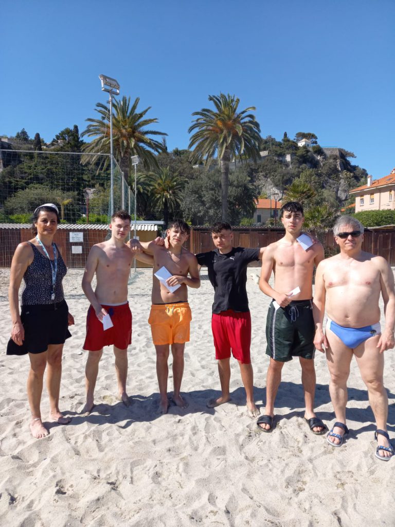 La “Giornata azzurra”, promossa dal Dipartimento di scienze motorie guidato dai professori Maria Strocchia e Pietro Gagliardini, ha visto la partecipazione di una cinquantina di studenti che hanno disputato sulle spiagge liguri un torneo di beach volley. Ecco la classifica finale: in terza posizione la squadra formata dagli studenti di III C meccanici Riccardo Celkupa, Antonio Surace, David Merkaj e Domenico Fileccia.
