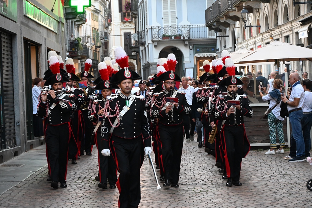 Partendo da piazza del Battistero, la Fanfara e i Carabinieri nella storica Grande Uniforme Speciale hanno percorso via Italia, accolti da un folto pubblico che ha riempito le strade e accompagnato la parata fino a piazza Vittorio Veneto. L’arrivo in piazza è stato scandito dall’esecuzione di due brani, un primo, emozionante, momento di spettacolo offerto alla città.