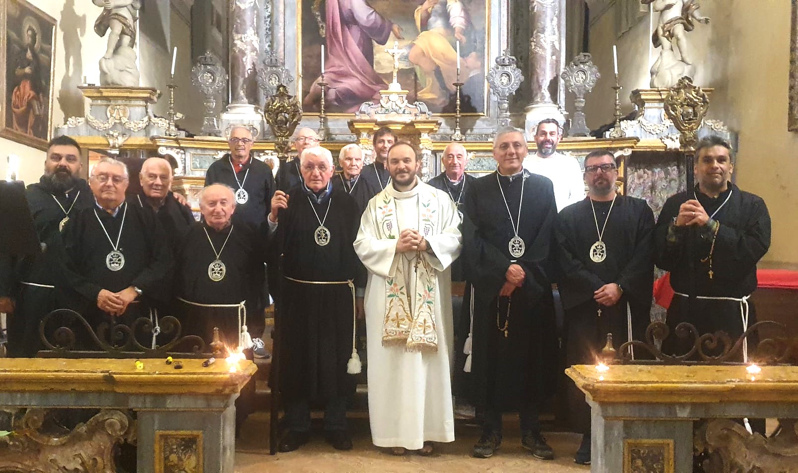 Al suono della campanella i Confratelli con saio nero, cordone in vita, medaglione al collo e bastone, hanno fatto il loro ingresso e si sono posizionati attorno all’altare con il parroco don Patrizio Maggioni, che prima di iniziare la Corona, ha fatto un accenno sul compito dell’Arciconfraternita, specificando che era quello di dare degna sepoltura ai morti e aiutarli nel passaggio alla vita eterna, all’abbraccio con Dio Nostro Signore.