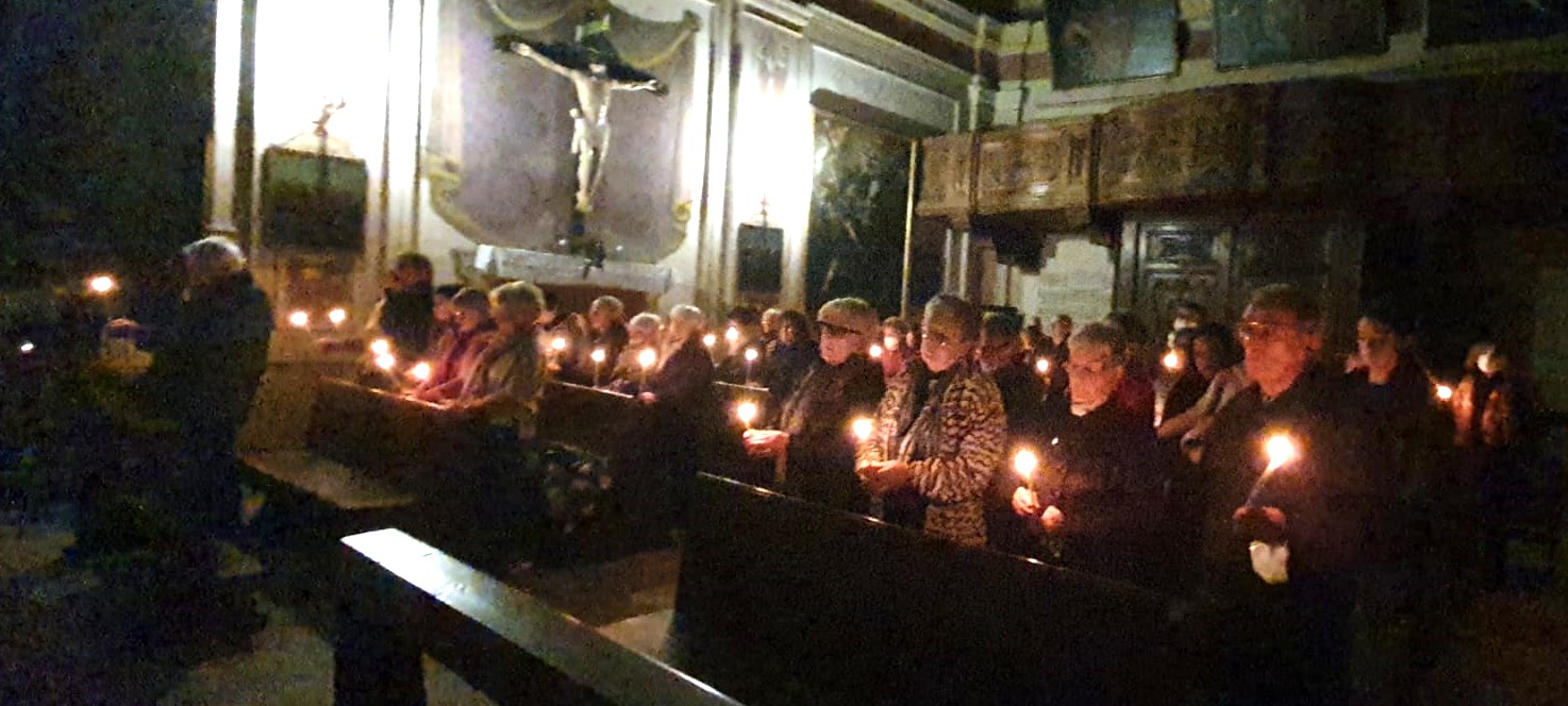 Al termine del Santo Rosario sono state distribuite le candele ai fedeli in assemblea e a luci spente, in un ambiente reso suggestivo dalla luce fioca delle candele, il confratello Gusman Aureliano ha ricordato i nomi di tutti i Confratelli passati a miglior vita.
