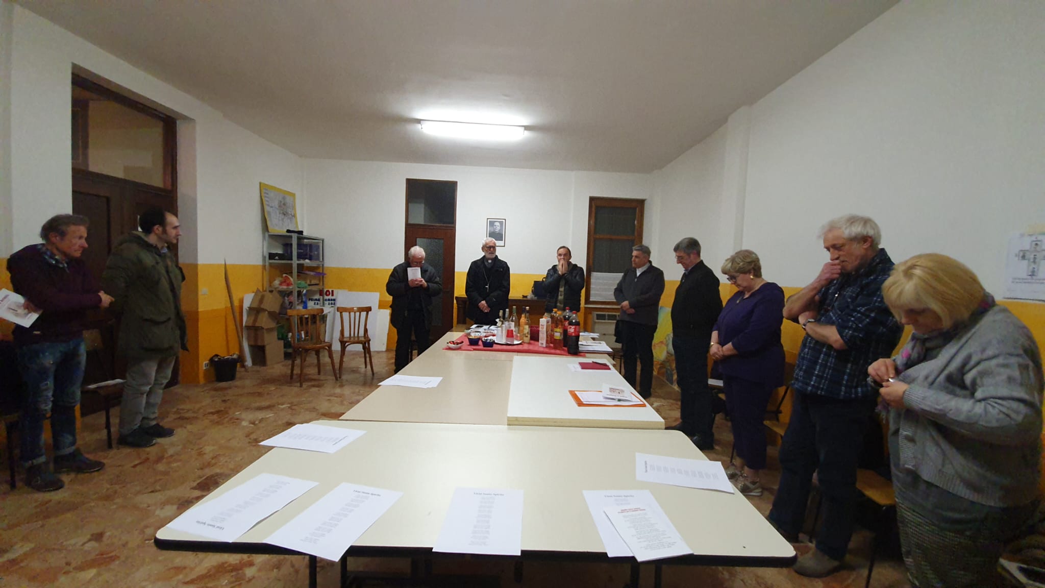 Il Pastore della Chiesa eusebiana alle 21 ė stato accolto dal parroco don Patrizio Maggioni, da don Riccardo Leone e dal Consiglio della Comunità, a Trino, nel salone delle riunioni e delle feste da poco intitolato a don Gariglio.