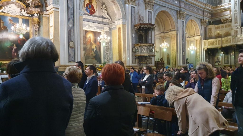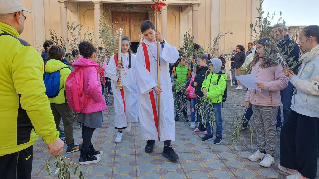 Tanti i bambini presenti con i loro genitori e i Catechisti, tutti con il loro ramoscello d’ulivo tenuto in mano ben alto, pronti a rievocare l’ingresso trionfale di Gesù a Gerusalemme accolto dalla folla che lo acclama come re agitando fronde e rami presi dai campi.