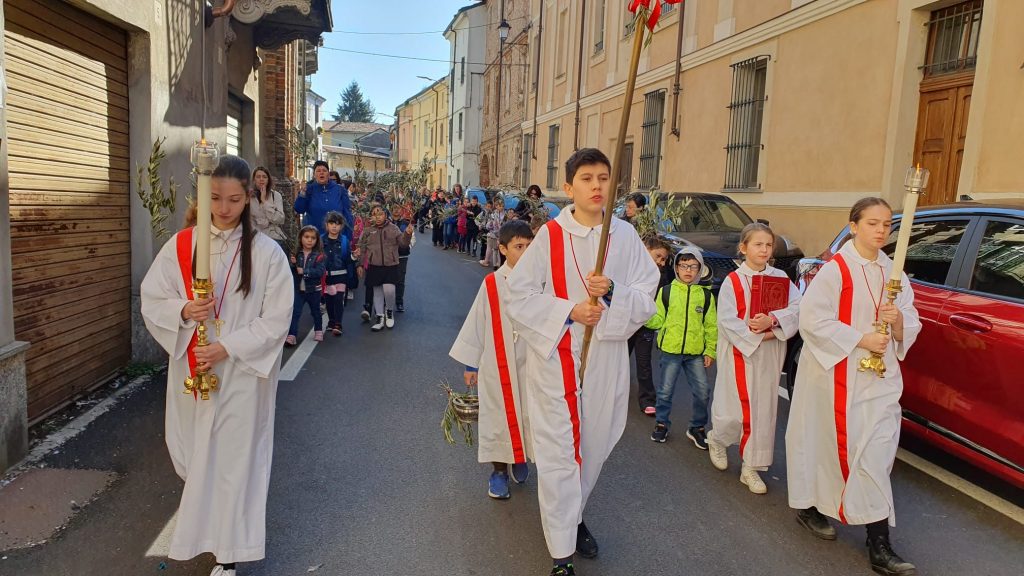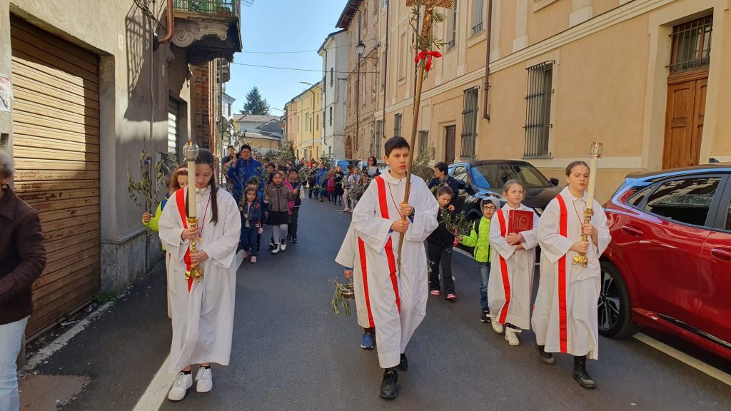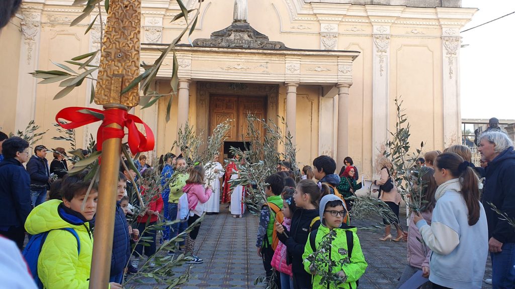 Dopo la benedizione dei ramoscelli d’ulivo e la lettura di un brano del Vangelo, ha avuto il via la breve ma sentita processione fino alla parrocchiale al canto di “Osanna al figlio di David”.