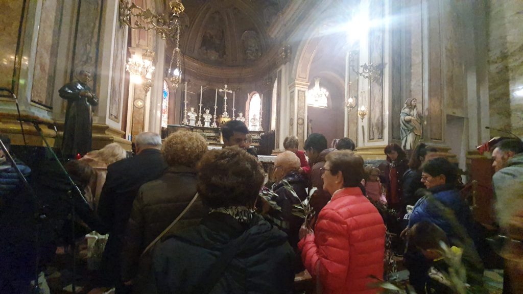 Per l’occasione l’altare era addobbato con rami d’ulivo.