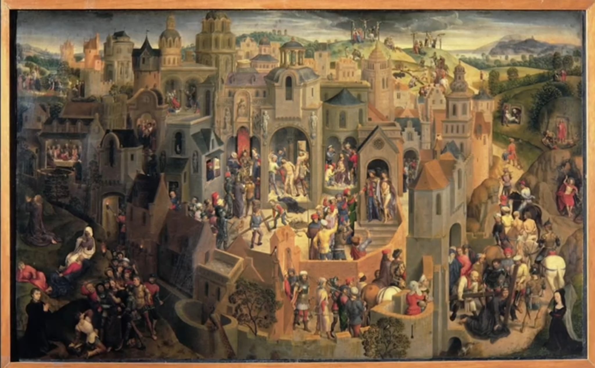 In questo video si parla anche di un quadro intitolato “Passione di Cristo”, che si trova a Torino nella Galleria Sabaudia. Un’opera davvero eccezionale, in cui, in questa tavola il pittore ha rappresentato contemporaneamente tutti gli episodi della vita di Gesù, dall’entrata in Gerusalemme fino alle sue apparizioni dopo la resurrezione. Lo straordinario sta che, in un piccolo spazio, il quadro misura cm. 50 x 100, troviamo tutti i fatti della settimana Santa e oltre, tutto ciò che stiamo per vivere ed è riportato nei Vangeli. Un’opera commissionata dal banchiere fiorentino Tommaso Portinari, in cui egli stesso è raffigurato in basso, ai due lati, con la moglie Maria Baroncelli.