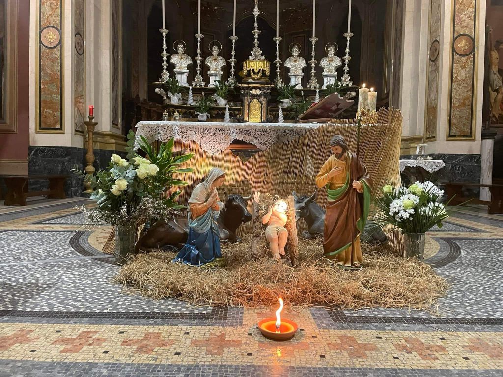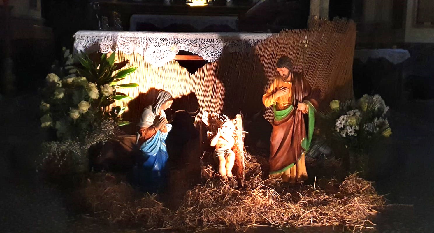In questa notte Santa, dove non tutto è semplice, non lo è stato neanche, ai tempi, per Maria e Giuseppe, non c’era posto per loro, non c’è stata accoglienza neanche per una partoriente. Ma a Trino nella chiesa parrocchiale l’accoglienza è stata calda, i sacerdoti a mezzanotte erano lì ad attendere i fedeli. Tanti i presepi allestiti, per rievocare questo momento storico che si rinnova ogni anno, fuori dalla chiesa, all’interno della Cappella del Beato Oglerio, tanti i presepi esposti realizzati manualmente dai bambini del catechismo, ma il più significativo è quello allestito davanti all’altare maggiore, con le statue di Maria e Giuseppe che guardano quel bimbo deposto in una mangiatoia. Quel Gesù Bambino che viene proprio da Betlemme, portato a Trino da Renzo Palazzi, e lo stesso Renzo il giorno di Natale diceva: “Guardate il bambino, ha gli occhi che brillano!” Ed è con quel bambino con gli occhi che brillano tra le mani, che la notte di Natale il parroco, don Patrizio Maggioni, ha impartito la solenne benedizione finale.