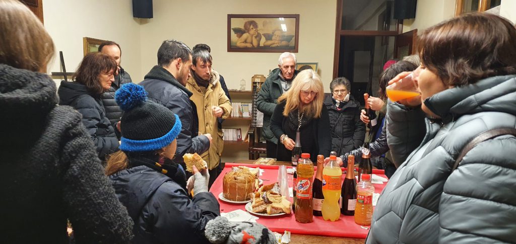 Al termine i sacerdoti hanno invitato tutti a far festa in parrocchia. Una bella festa per tutta la comunità dove si è brindato e fatto festa tutti insieme mangiando una fetta di panettone e pandoro e gioendo ci si è scambiati gli auguri di Buon Natale.
